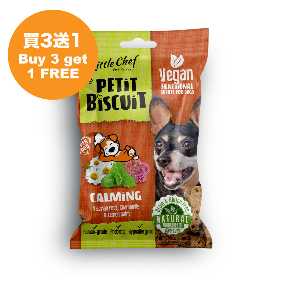 {"id":9935698493747,"title":"Little Chef (Calming) Petit Biscuit 100g","handle":"little-chef-calming-petit-biscuit-100g","description":"\u003cp\u003ePetit Biscuit Calming is a \u003cstrong\u003eproactive support for your dog’s health, soothe nerves and promote relaxation\u003c\/strong\u003e. Healthy and delicious functional treats for dogs. These treats are oven-baked in small batches using superfood, natural, human-grade ingredients and are vegan. They can be given to dogs on any occasion as a reward or treat.\u003c\/p\u003e\n\u003cp\u003eThis healthy recipe with Valerian root, Chamomile \u0026amp; Lemon Balm is a perfect treat for traveling or visiting the vet!\u003c\/p\u003e\n\u003cp\u003eRecommended for puppies older than 4 months.\u003c\/p\u003e\n\u003cp\u003ePackaging: 100 g\u003c\/p\u003e\n\u003cp\u003e++\u003c\/p\u003e\n\u003cp class=\"product-singe-uppercase\"\u003e\u003cspan style=\"text-decoration: underline;\"\u003e\u003cstrong\u003eBenefits of these Superfood Ingredients:\u003c\/strong\u003e\u003c\/span\u003e\u003c\/p\u003e\n\u003cp class=\"product-text\"\u003ePerfect for traveling or visiting the vet\u003c\/p\u003e\n\u003cul\u003e\n\u003cli class=\"product-text\"\u003eNaturally, it calms anxiety and reduces stress in dogs\u003c\/li\u003e\n\u003cli class=\"product-text\"\u003eEnhance gut health with prebiotic benefits\u003c\/li\u003e\n\u003cli class=\"product-text\"\u003eSoothe nerves and promote relaxation\u003c\/li\u003e\n\u003cli class=\"product-text\"\u003ePrebiotic\u003c\/li\u003e\n\u003cli class=\"product-text\"\u003eHypoallergenic\u003c\/li\u003e\n\u003c\/ul\u003e\n\u003cp class=\"product-text\"\u003e++\u003c\/p\u003e\n\u003cp class=\"product-text\"\u003e\u003cstrong\u003e\u003cspan style=\"text-decoration: underline;\"\u003eIngredients\u003cbr\u003e\u003c\/span\u003e\u003c\/strong\u003eHokkaido Pumpkin 20%, Chickpeas, Potato pulp dried, Linseed, Pumpkin Flour, Carob Flour 5.5%, Sweet Potato, Linseed meal, Sesame seed, cold pressed Coconut Oil, Chicory root, Inulin 0.5%, Valerian 0.4%, Sodium Hydrogen Carbonate, Lemon Balm 0.3%, Brewer's Yeast 0.2%, Chamomile 0.2%; Natural Additives: Sensory: Rosemary Extract 0.05%, Technological: Citric Acid 0.07%. \u003cbr\u003e\u003c\/p\u003e\n\u003cp class=\"product-text\"\u003e\u003cspan style=\"text-decoration: underline;\"\u003e\u003cstrong\u003eAnalytical constituents\u003c\/strong\u003e\u003c\/span\u003e\u003cbr\u003eCrude Fat 21%, Crude Proteins 19%, Moisture 9% (max), Crude fiber 5.6%, Sugars 3.4%, Crude Ash 3%; Potassium (K) 6118 mg\/kg, Phosphorus (P) 4200 mg\/kg, Magnesium (Mg) 1791 mg\/kg, Sodium (Na) 1454 mg\/kg, Calcium (Ca) 1200 mg\/kg, Iron (Fe) 211 mg\/kg, Zinc (Zn) 32 mg\/kg, Manganese (Mn) 21 mg\/kg, Copper (Cu) 9.3 mg\/kg; Vitamin E 97 IU\/kg, Vitamin B1 0.12 mg\/kg, Vitamin B2 5.9 mg\/kg, Vitamin B6 0.14 mg\/kg. All obtained from ingredients.\u003c\/p\u003e","published_at":"2025-10-30T14:29:30+08:00","created_at":"2025-10-30T14:29:30+08:00","vendor":"Little Chef","type":"Pet Snacks","tags":["狗小吃","for dog"],"price":4500,"price_min":4500,"price_max":4500,"available":true,"price_varies":false,"compare_at_price":4500,"compare_at_price_min":4500,"compare_at_price_max":4500,"compare_at_price_varies":false,"variants":[{"id":52607590007091,"title":"Default Title","option1":"Default Title","option2":null,"option3":null,"sku":"VGL030519","requires_shipping":true,"taxable":true,"featured_image":null,"available":true,"name":"Little Chef (Calming) Petit Biscuit 100g","public_title":null,"options":["Default Title"],"price":4500,"weight":0,"compare_at_price":4500,"inventory_quantity":8,"inventory_management":"shopify","inventory_policy":"deny","barcode":"8606112030519","requires_selling_plan":false,"selling_plan_allocations":[]}],"images":["\/\/zh-hk.oneveganshop.com\/cdn\/shop\/files\/VGL030519-1-buy3get1free.jpg?v=1763700773","\/\/zh-hk.oneveganshop.com\/cdn\/shop\/files\/641d6ed4-8df4-4b26-bc34-cd87705883d6.png?v=1763700773","\/\/zh-hk.oneveganshop.com\/cdn\/shop\/files\/6fc67c29-18ce-48ae-aec8-969dc5cc20c1.jpg?v=1763700773","\/\/zh-hk.oneveganshop.com\/cdn\/shop\/files\/d701d123-22de-4d04-9a06-f62cc39a16a6.jpg?v=1763700773","\/\/zh-hk.oneveganshop.com\/cdn\/shop\/files\/9c7936e4-d5f3-4785-8afa-8e66a41de494.jpg?v=1763700773"],"featured_image":"\/\/zh-hk.oneveganshop.com\/cdn\/shop\/files\/VGL030519-1-buy3get1free.jpg?v=1763700773","options":["Title"],"media":[{"alt":null,"id":42713271238963,"position":1,"preview_image":{"aspect_ratio":1.0,"height":920,"width":920,"src":"\/\/zh-hk.oneveganshop.com\/cdn\/shop\/files\/VGL030519-1-buy3get1free.jpg?v=1763700773"},"aspect_ratio":1.0,"height":920,"media_type":"image","src":"\/\/zh-hk.oneveganshop.com\/cdn\/shop\/files\/VGL030519-1-buy3get1free.jpg?v=1763700773","width":920},{"alt":null,"id":42489003016499,"position":2,"preview_image":{"aspect_ratio":1.0,"height":416,"width":416,"src":"\/\/zh-hk.oneveganshop.com\/cdn\/shop\/files\/641d6ed4-8df4-4b26-bc34-cd87705883d6.png?v=1763700773"},"aspect_ratio":1.0,"height":416,"media_type":"image","src":"\/\/zh-hk.oneveganshop.com\/cdn\/shop\/files\/641d6ed4-8df4-4b26-bc34-cd87705883d6.png?v=1763700773","width":416},{"alt":null,"id":42489003049267,"position":3,"preview_image":{"aspect_ratio":1.0,"height":920,"width":920,"src":"\/\/zh-hk.oneveganshop.com\/cdn\/shop\/files\/6fc67c29-18ce-48ae-aec8-969dc5cc20c1.jpg?v=1763700773"},"aspect_ratio":1.0,"height":920,"media_type":"image","src":"\/\/zh-hk.oneveganshop.com\/cdn\/shop\/files\/6fc67c29-18ce-48ae-aec8-969dc5cc20c1.jpg?v=1763700773","width":920},{"alt":null,"id":42489003082035,"position":4,"preview_image":{"aspect_ratio":1.0,"height":920,"width":920,"src":"\/\/zh-hk.oneveganshop.com\/cdn\/shop\/files\/d701d123-22de-4d04-9a06-f62cc39a16a6.jpg?v=1763700773"},"aspect_ratio":1.0,"height":920,"media_type":"image","src":"\/\/zh-hk.oneveganshop.com\/cdn\/shop\/files\/d701d123-22de-4d04-9a06-f62cc39a16a6.jpg?v=1763700773","width":920},{"alt":null,"id":42489003114803,"position":5,"preview